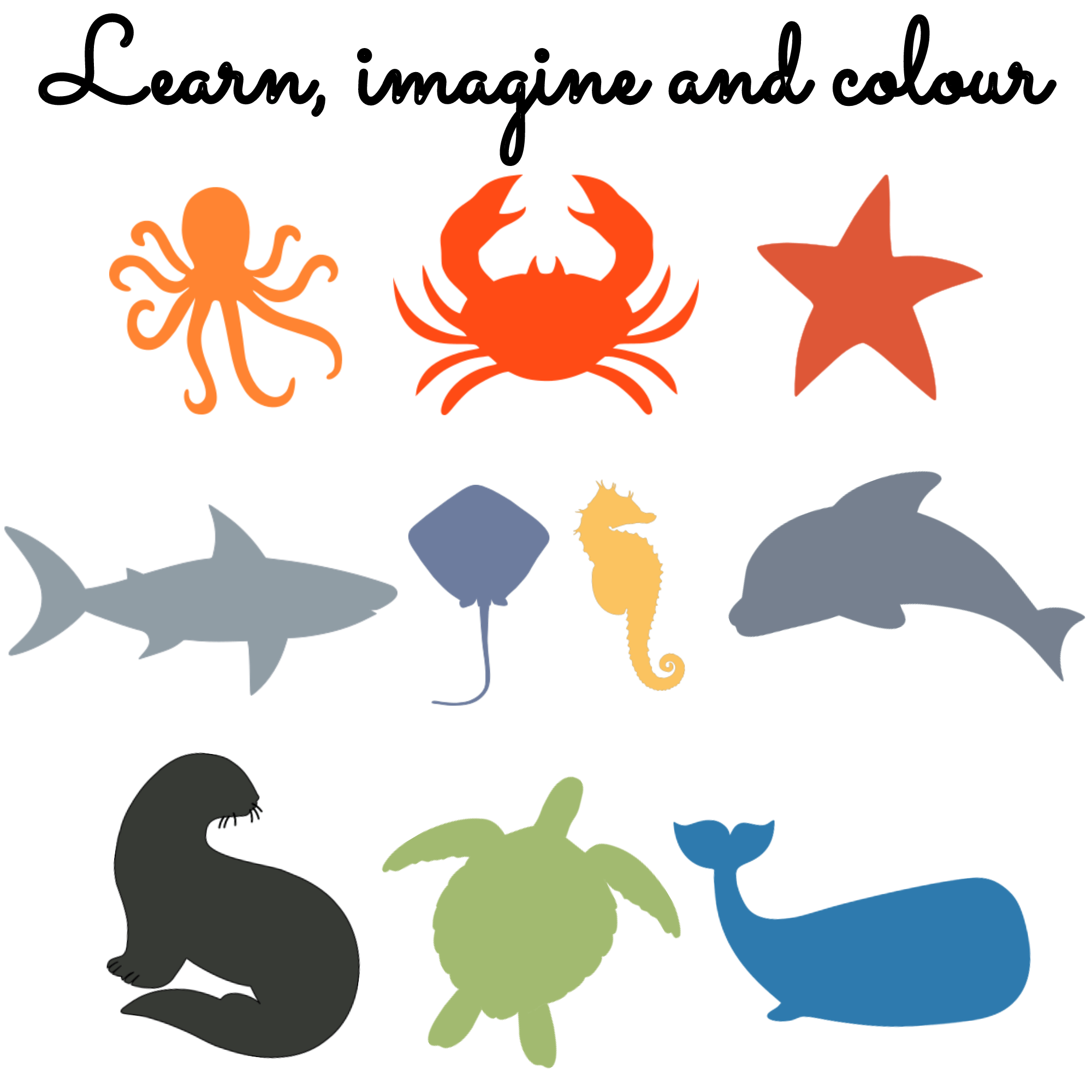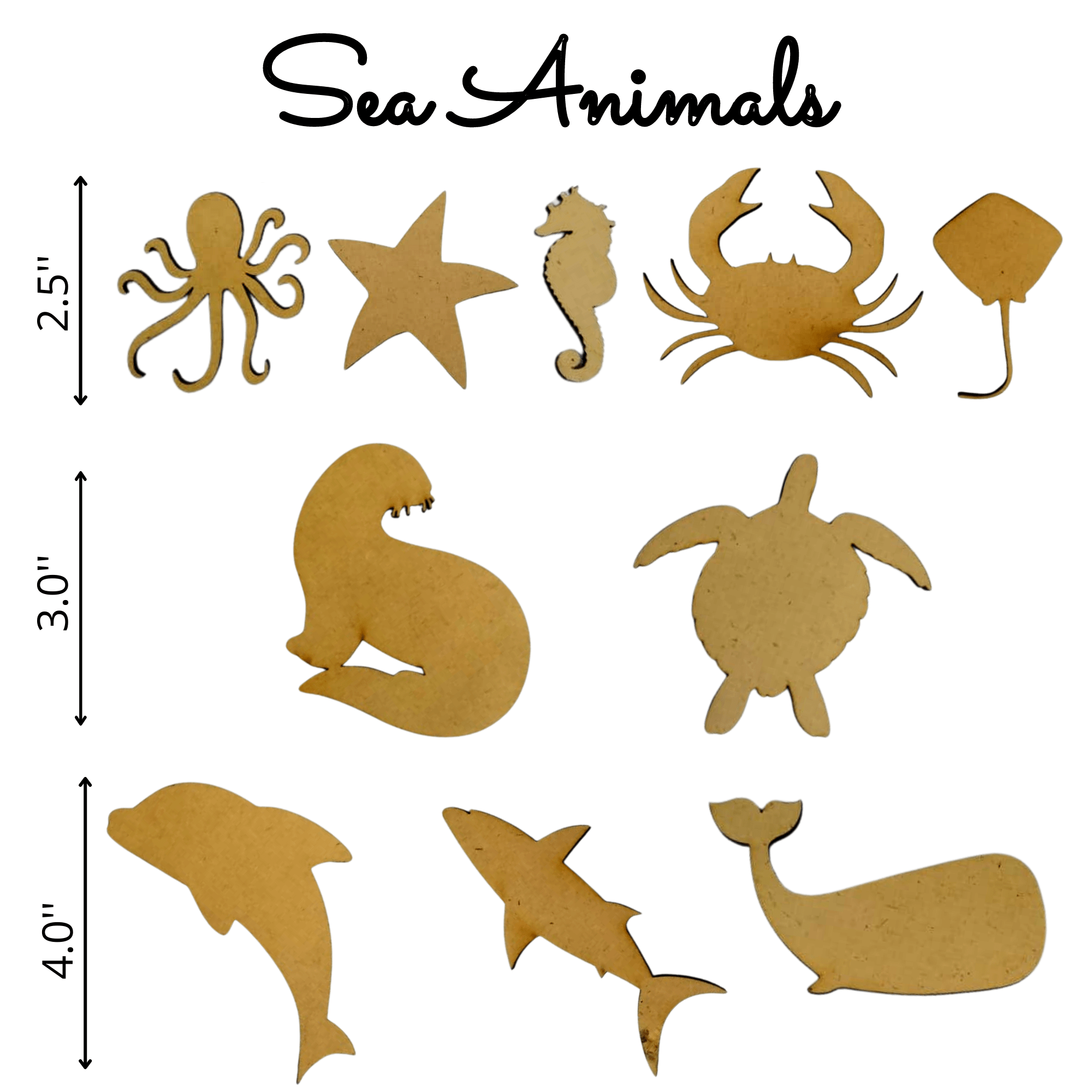 10 Sea Animals are included in the set: Crab, Dolphin, Octopus, Sea Otter, Sea Turtle, Seahorse, Shark, Starfish, Stingray and Whale