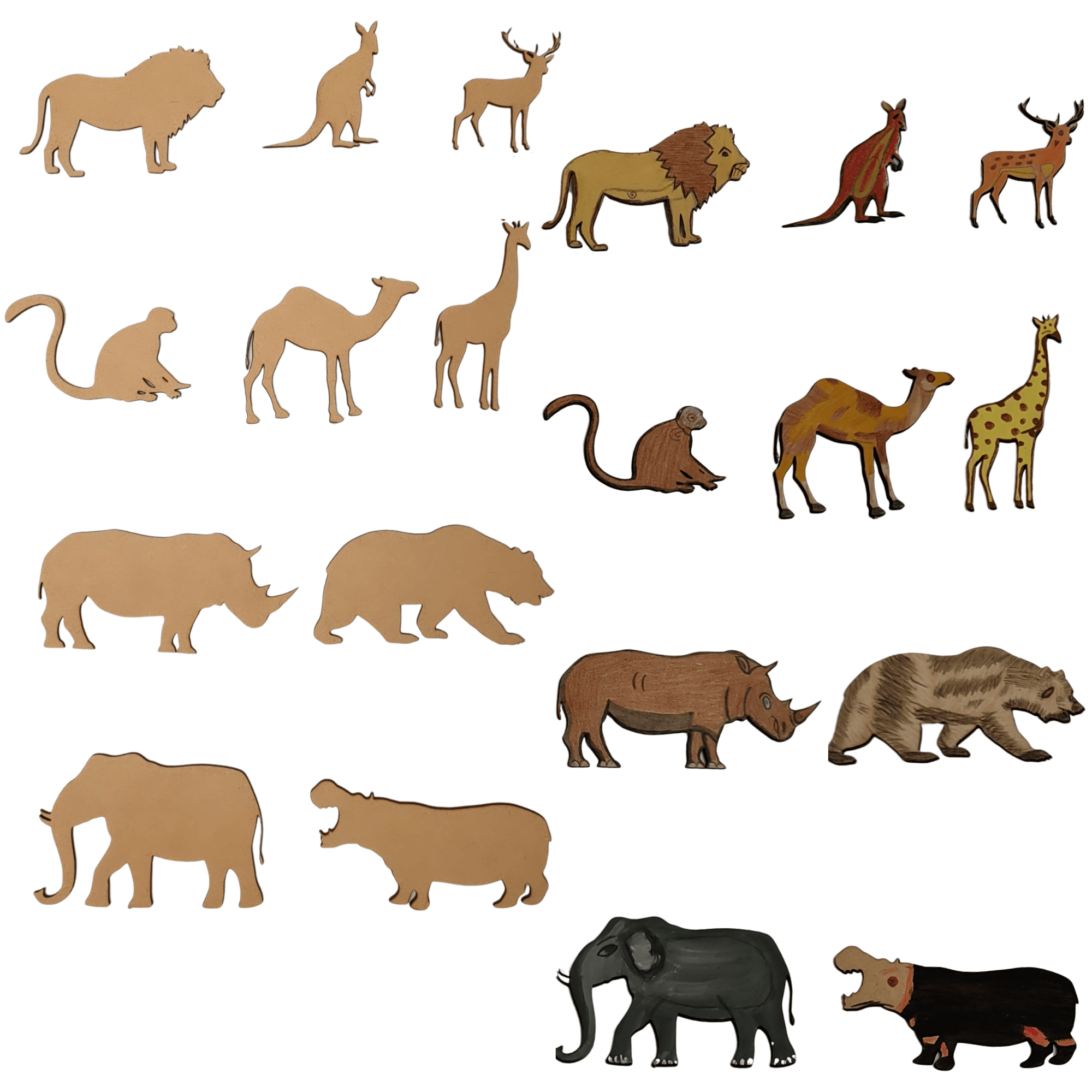 - These mdf wild animal cutouts from Bonjoy Fashion and Decor offers hours of engagement including, learning animal shapes, colouring and decorating, sticking on different surfaces, story telling, imaginative / free play.