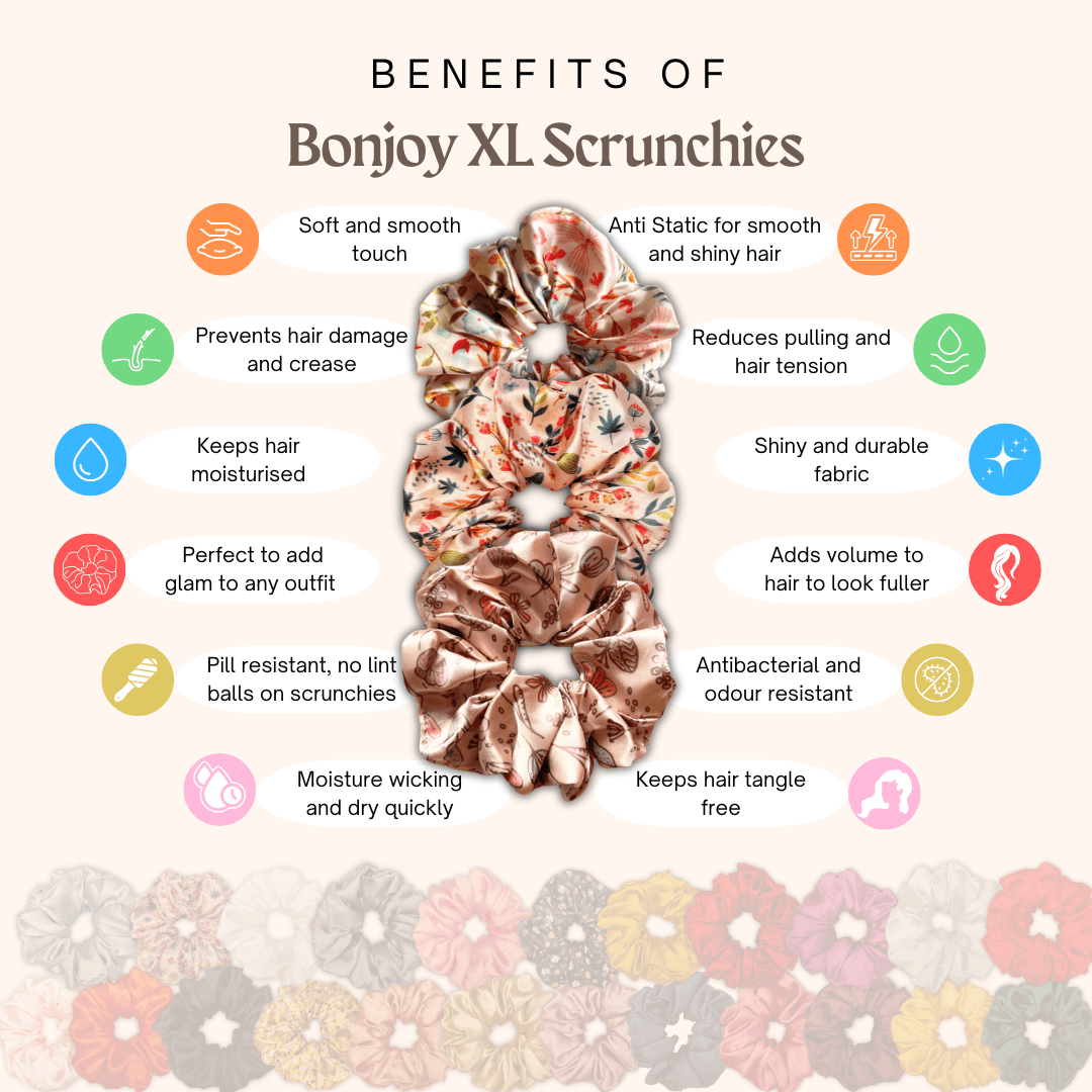 - See our styling guide and suggestions in the images for different ways you can style your hair with our scrunchies.