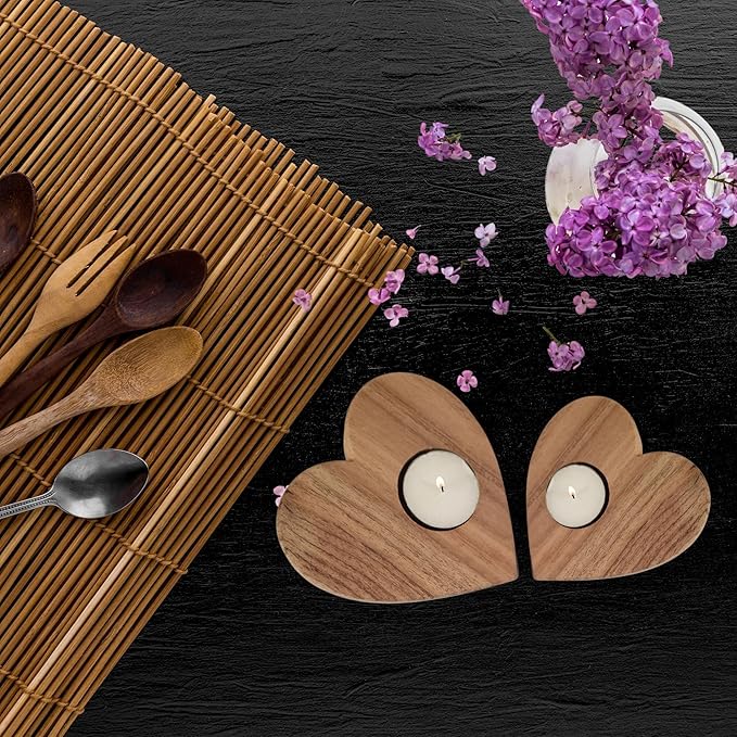 Bonjoy Fashion and Decor is proud to present to you our Handmade heart shaped tealight candle holder stands. These wood candle holders come in a set of 2. Our wooden candle stand set design is unique and can be used in conjunction with any existing home décor or designing elements at home. Use these adorable and beautifully hand finished wooden candle holders set to add charm to your home, office and restaurant decor. They are made of mango and acacia wood and are very durable. To bring out the best of these wooden candle holder stand, they are hand polished by our artisans for a natural finish to highlight the grains and texture that you will love and feel close to nature. Use the candle stand decoration ideas provided to relax and lighten up your space!